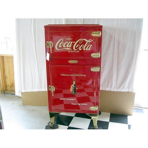 We have for sale a Coolerator Ice Box from the 1920's. It was manufactured by Duluth Refrigerator Corp. Duluth, Minnesota. The ice box had been professionally restored in the early 1980's. The ice box was purchased from an antique store in California in 1982. It was restored, very tastefully, with the Coca-Cola Nostalgia. Believe me, it is an eye catcher. The legs, hinges, and door latches have been brass plated. We believe the paint was powder coated when restored. It has been moved from California to Missouri. In the process of moving at different times, there have been 2 or 3 very small chips that appeared. The inside of the ice box had been painted and is very clean. It can be used as storage if need be. I the ice box is very heavy. We estimate it to weigh 250 pounds or more. The measurements are 60.375 x 30 x 23.5, the inside top 14 x 23.25 x 16.75 and the inside bottom 24.75 x 23 x 17.