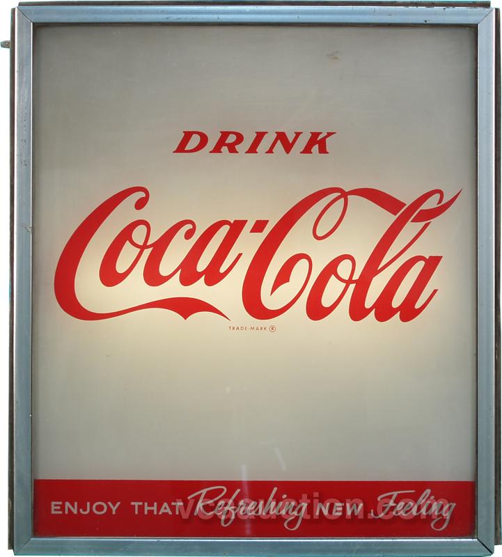 Coca Cola Light-Up Metal & Glass Sign, "Enjoy That Refreshing New Feeling" - 17" x 19"