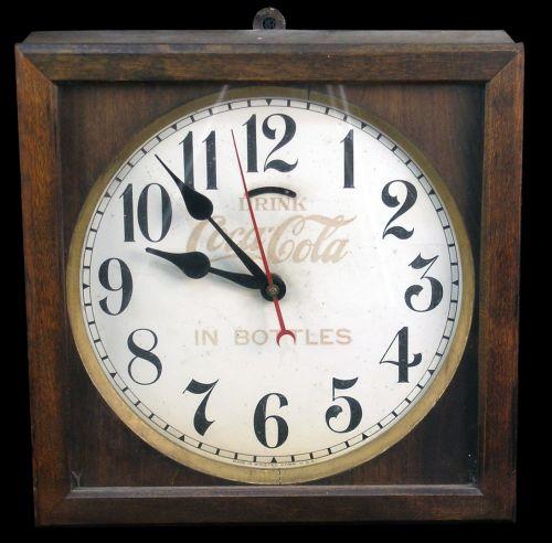 Coca-Cola Manual Start Clock in wood cabinet 14" Square