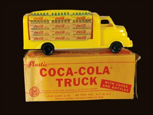 Coca Cola Marx Toy Delivery Truck 1950s, plastic with original box and cases. Excellent condition. 10 inches long.