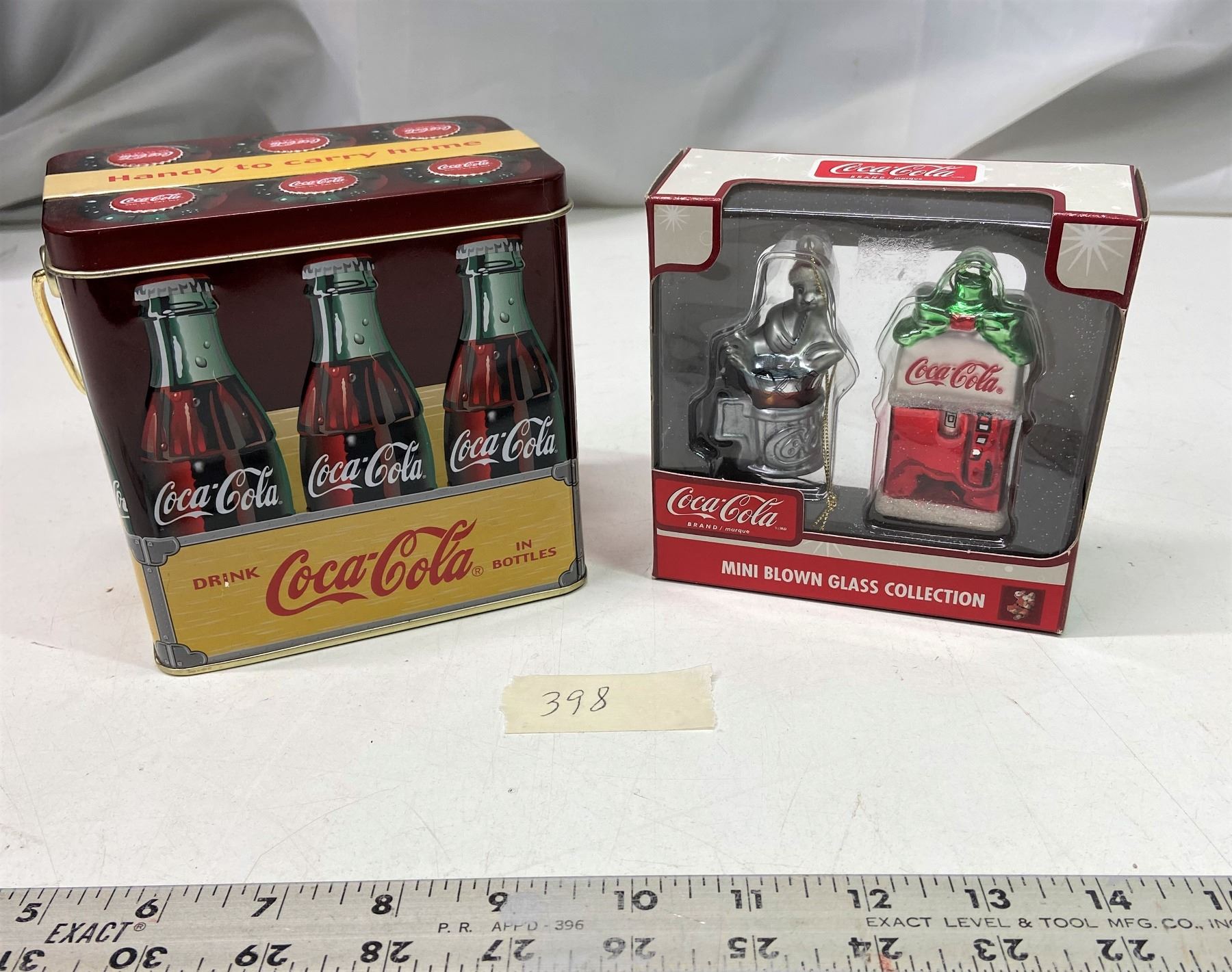 Coca Cola Memorabilia/Collectables - Blown Glass Ornaments and Tin Box