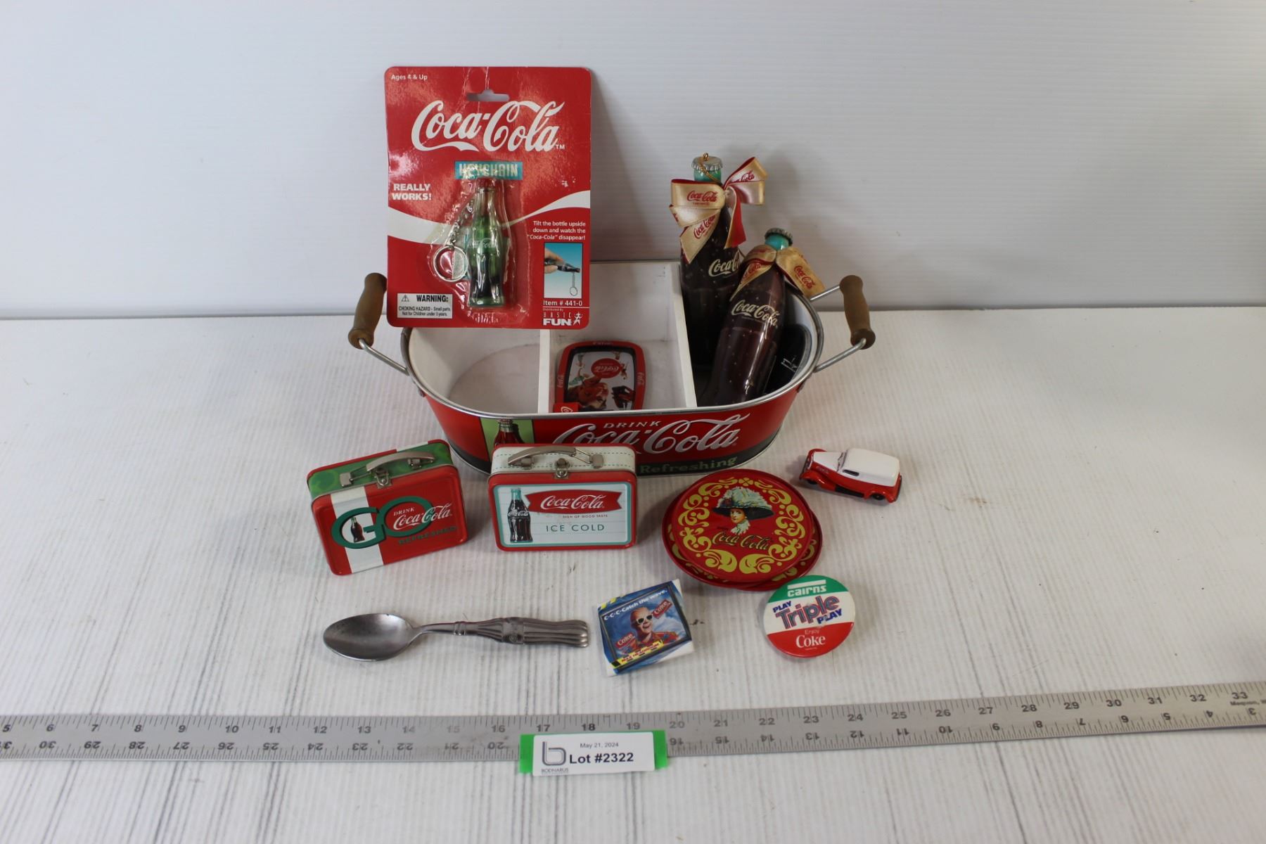 Coca-Cola Merchandise - Coasters, Key Chains, Tins, Carrying Basket, etc.