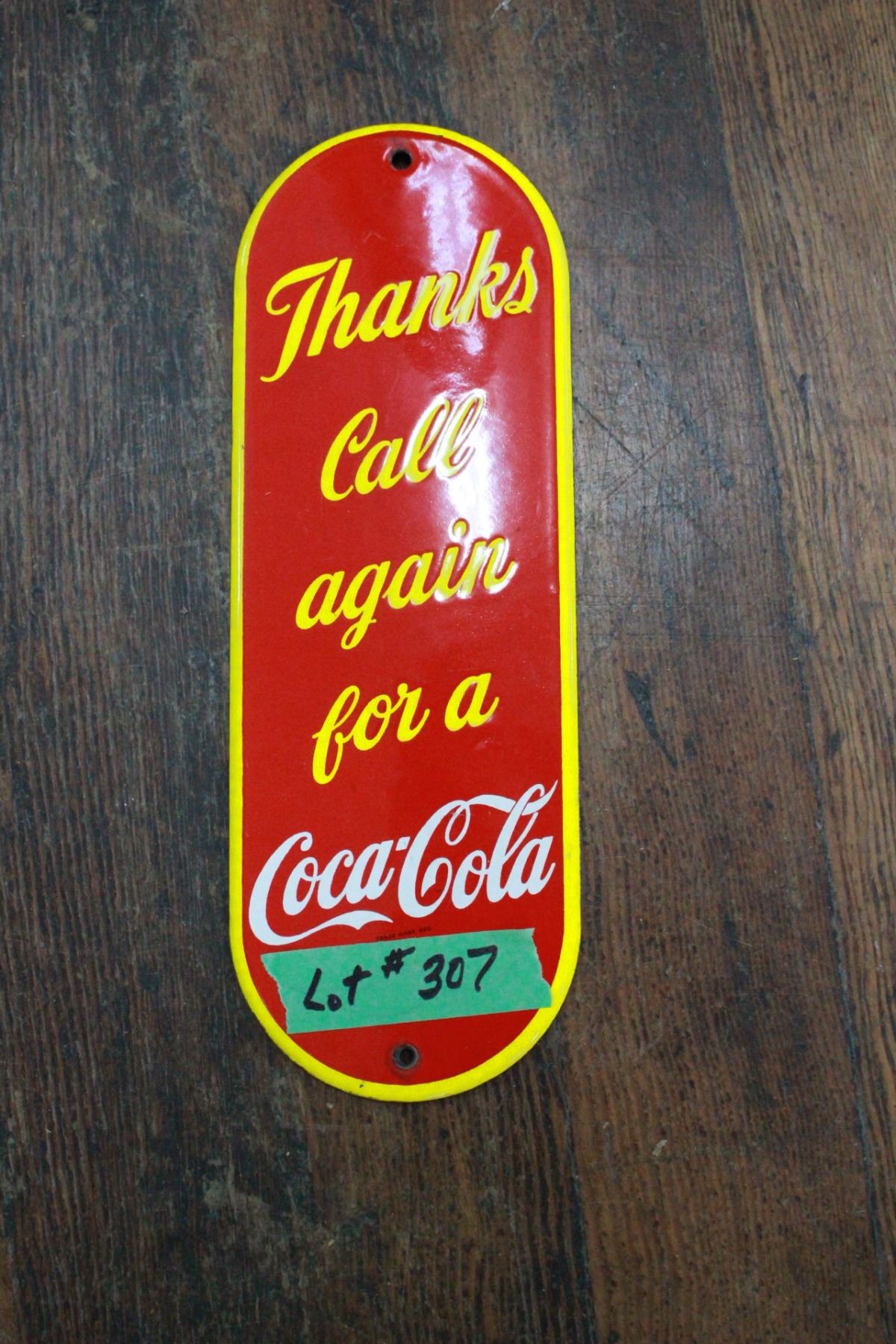 "Coca Cola" Metal Door Push/Sign "Thanks"