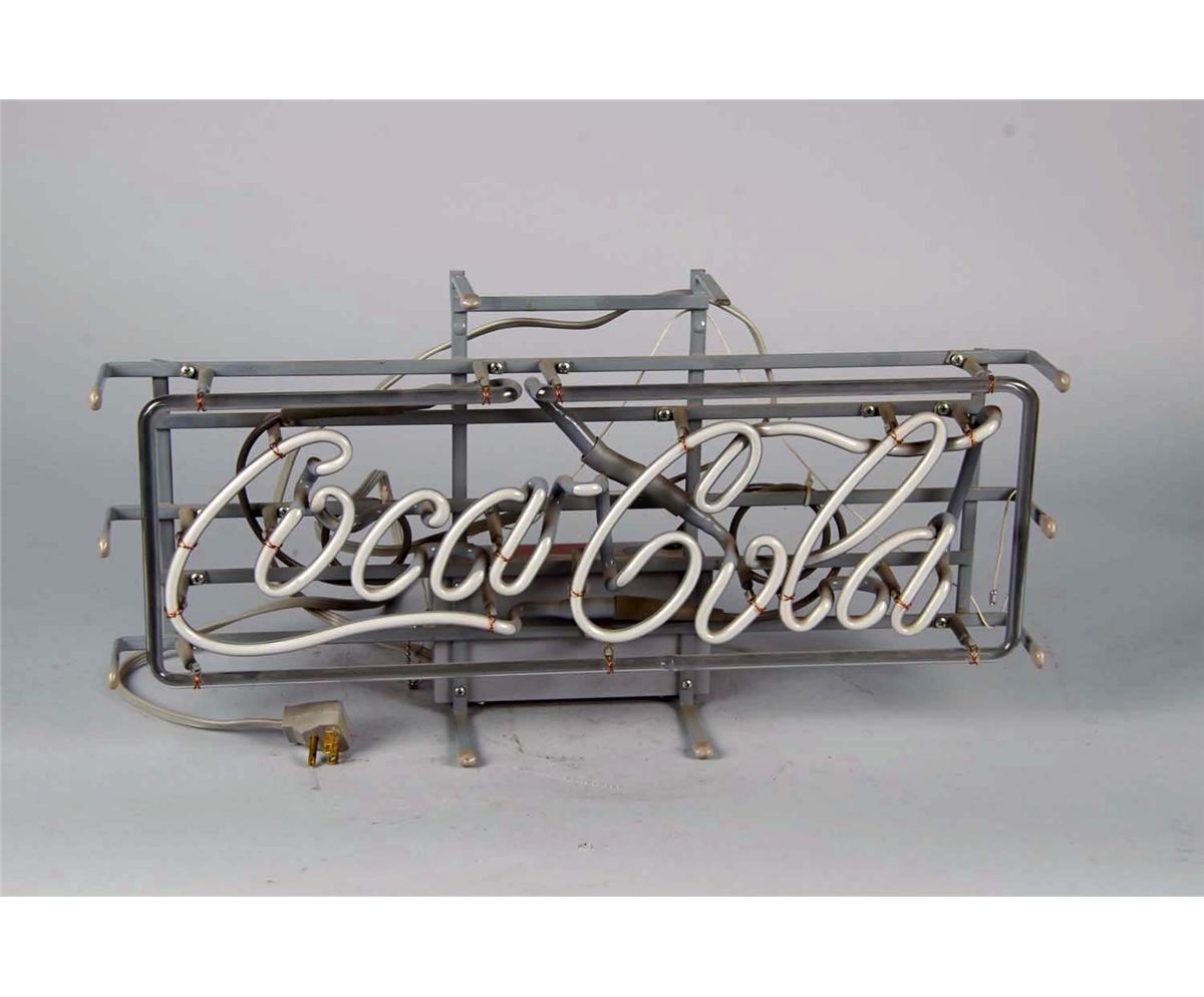 Dual color Coca Cola neon lighted sign in white and red, in working condition. Circa 1980s. Condition (Very good). Size Frame; 24" x 12" 7"