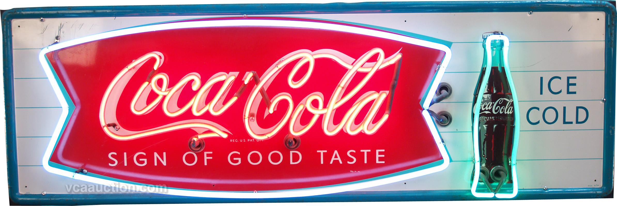 Coca Cola Neon Sign w/ "Fishtail" Symbol "Sign Of Good Taste" - 53" x 17"