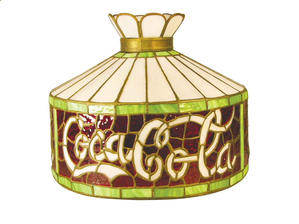 Coca Cola Original Leaded Glass Ceiling Lamp. Three cracked panels otherwise very good condition. 16 inch diameter and 13 inches tall.