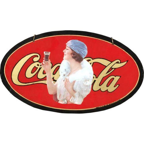 Coca Cola Oval Glass Hanging Sign 22 x 13" (May be Contemporary)