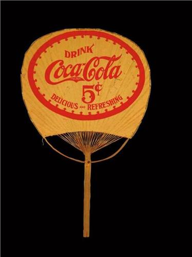 Coca Cola Paper Fan, 1900, glass with floral design. Excellent condition. 10 X 16 inches.