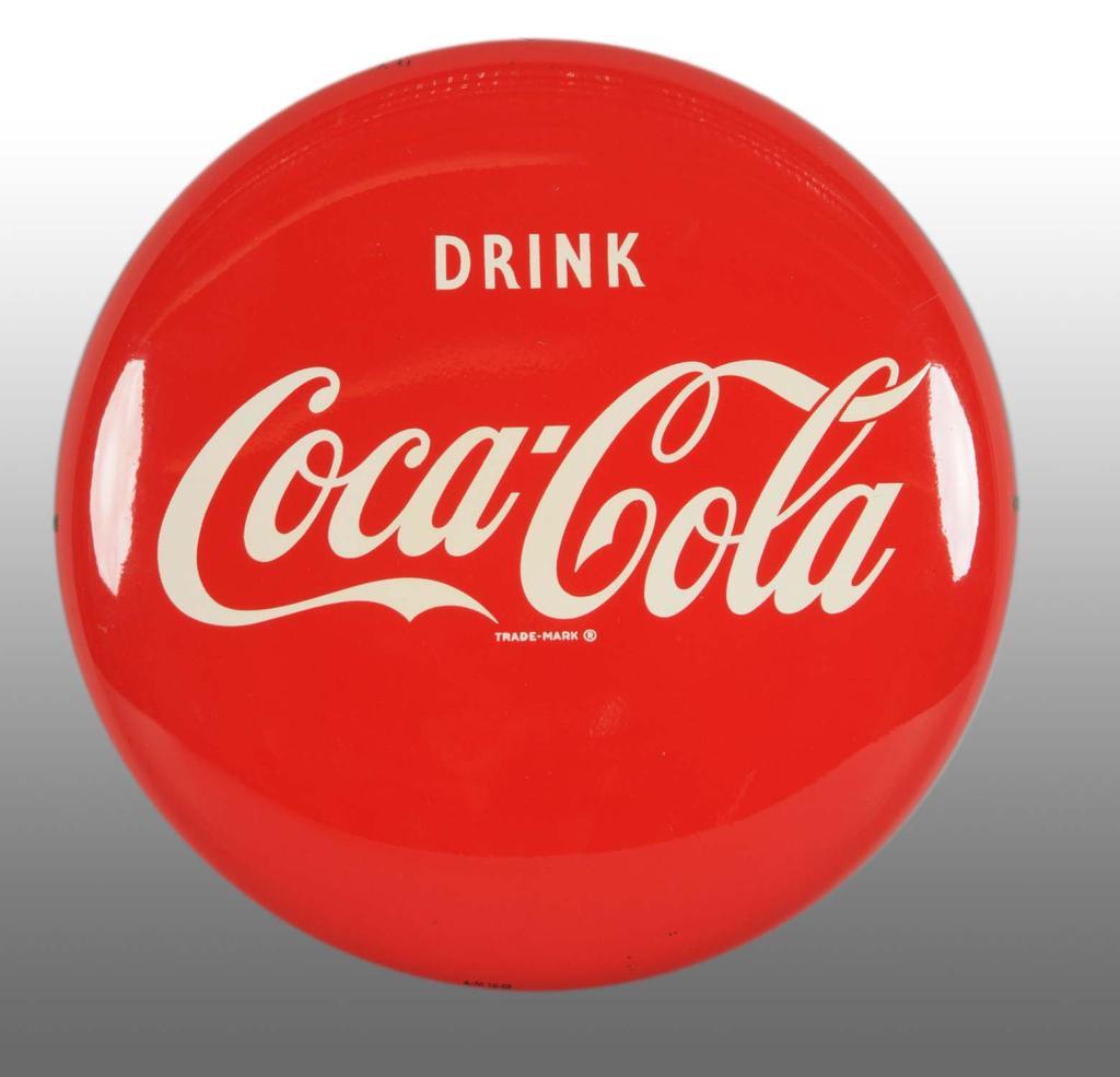 1950. Includes connecting hardware. Pilaster is very clean within border with only a few minor chips at bottom. Button is nice and bright with only a few small marks. Displays wonderfully. Condition (8.5, Excellent). Size 16" x 54".