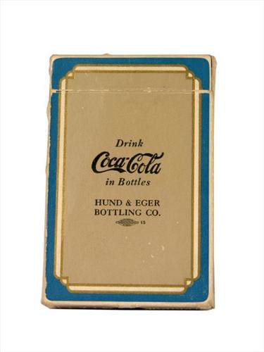 Coca Cola Playing Cards 1938, Hund and Eger Bottling Company St. Joe, MO. Blue border with grey. Excellent condition. Missing the Jokers