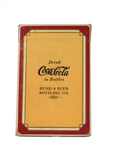 Coca Cola Playing Cards 1938, Hund and Eger Bottling Company St. Joe, MO. Maroon border with mustard. Excellent condition.