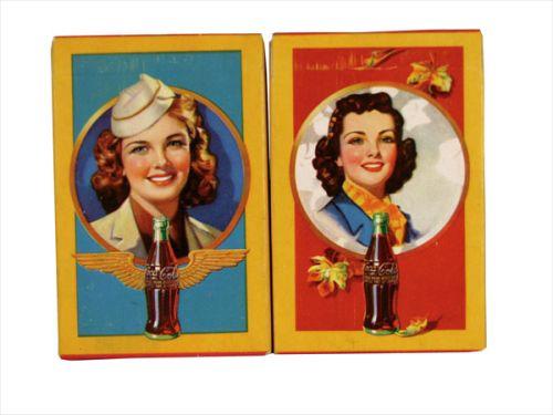 2 Decks of Coca Cola Playing Cards 1943, Autumn Girl/Military. Both complete, unopened in mint condition.