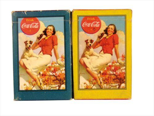 2 Decks of Coca Cola Playing Cards 1943. Yellow and blue versions, Scotty Dog Deck. Both excellent condition.
