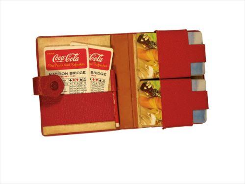 Two Decks of Coca Cola Playing Cards 1950, in a leatherette carrier with pencil and instructions. NAPBL St. Petersburg, FL. Complete and in excellent condition.