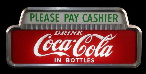 Coca-Cola "Please Pay Cashier" lighted hanging sign