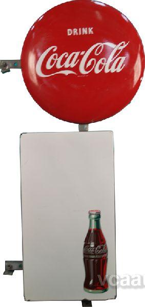 Coca Cola Porcelain Button 2 Piece Sign, w/ metal wall mount bracket & enamel Coca Cola sign w/ space to write specials of the day - button - 24" diam, enamel sign - 18" x 33"