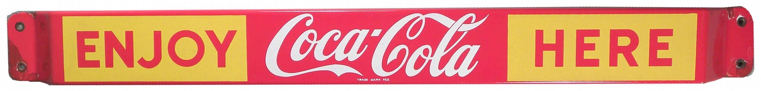 Coca Cola Porcelain Door Pull. Near mint condition. 31 1/2 X 3 inches.