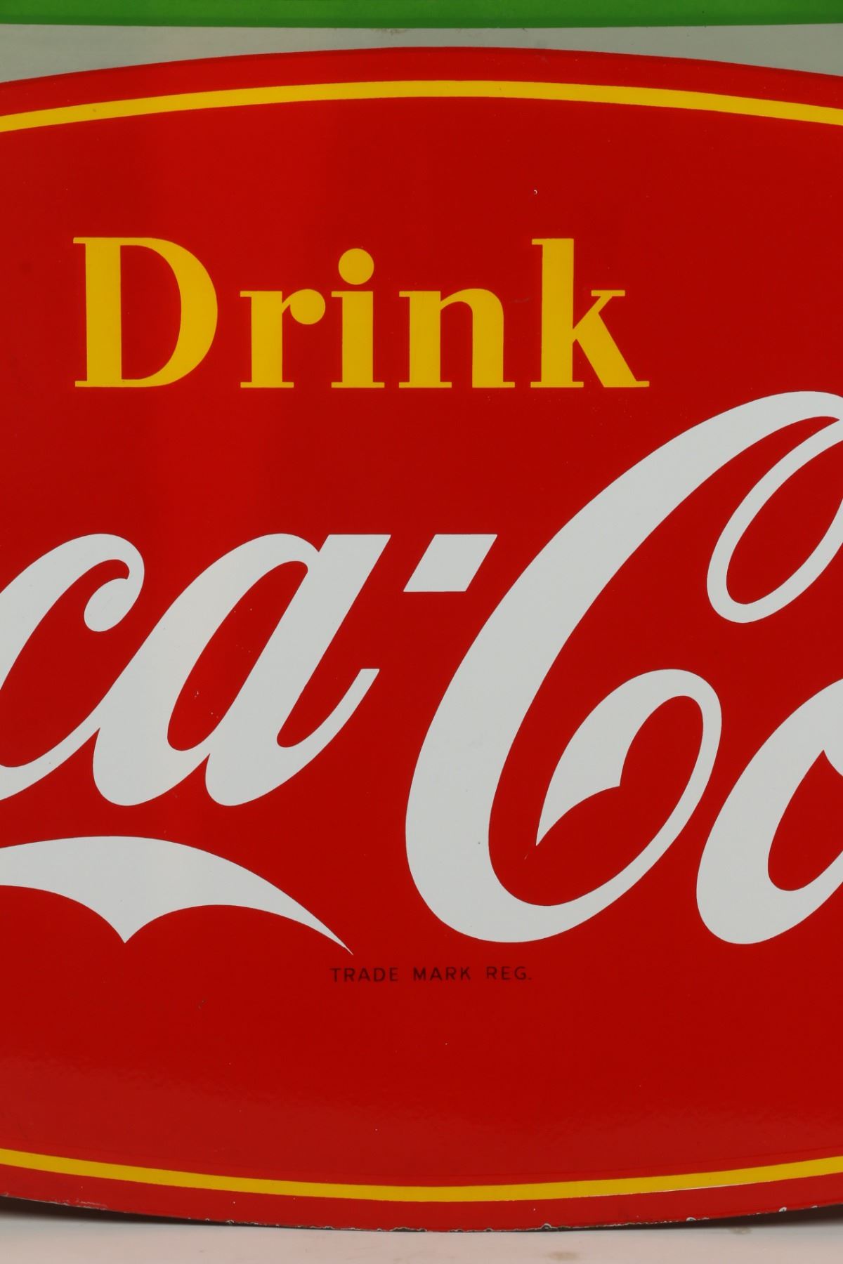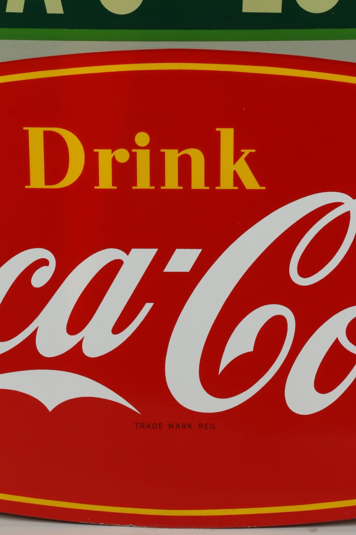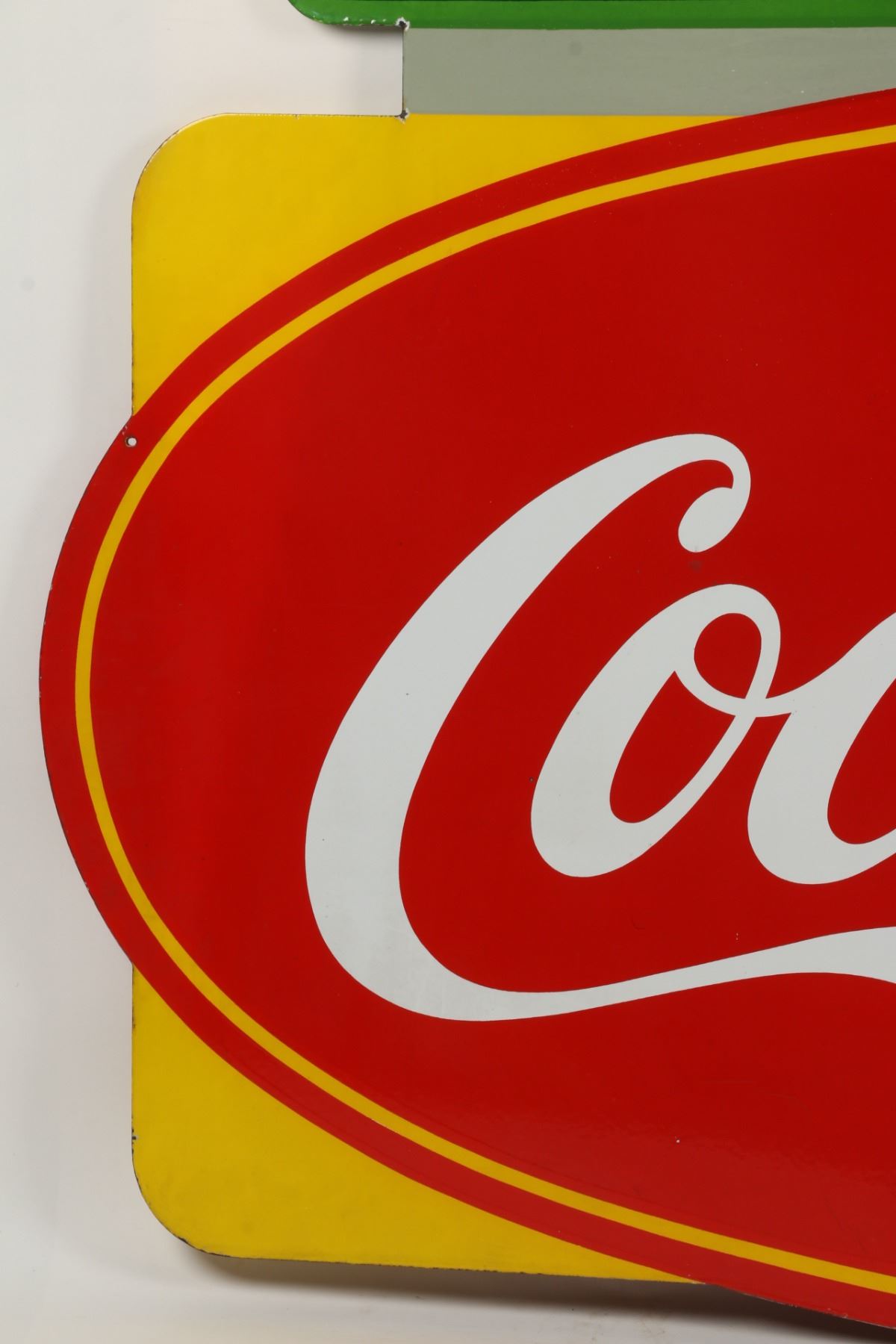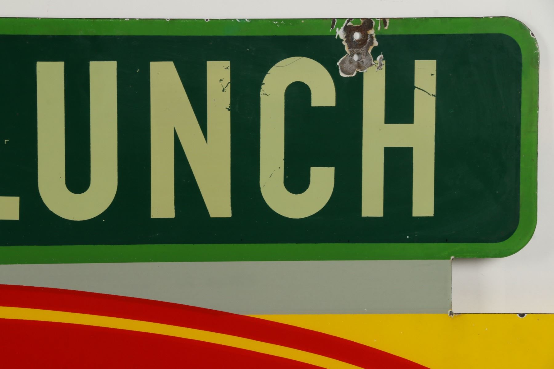 Canadian. Circa 1953. 2-sided porcelain. Marked, "Made in Canada, 1953 P&M (Orillia)", lower right edge of one side. "Emma's Lunch" privilege banner original and painted. From Brown's Beverages factory, Orillia, Ontario. 5' x 39". Minor chips surround hanging holes at upper edge. $1500-2000.