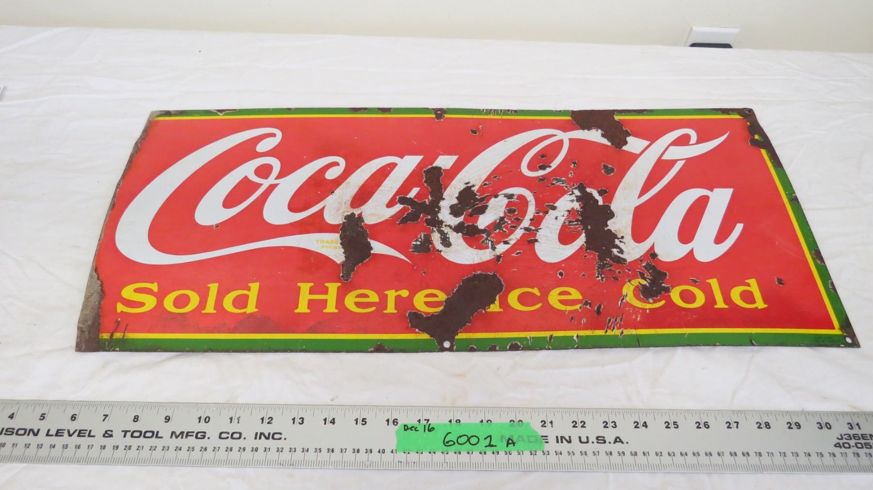 Coca-Cola Porcelain Sign - stamped 1939 - made in Canada - 12.25"x27.75"
