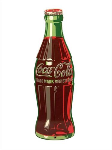 Coca Cola Porcelain Sign, die cut bottle 1950s. Mint condition. 5 X 16 1/2 inches.