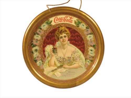 Coca Cola Self Framed Tin Sign. Extremely rare 1903 string hanger. Near mint condition. 6 inch dia.