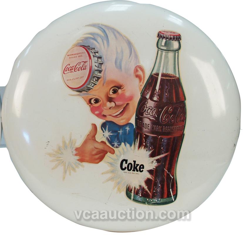 Coca Cola "Sprite" Boy White Tin Button Sign, very rare - 16" diam