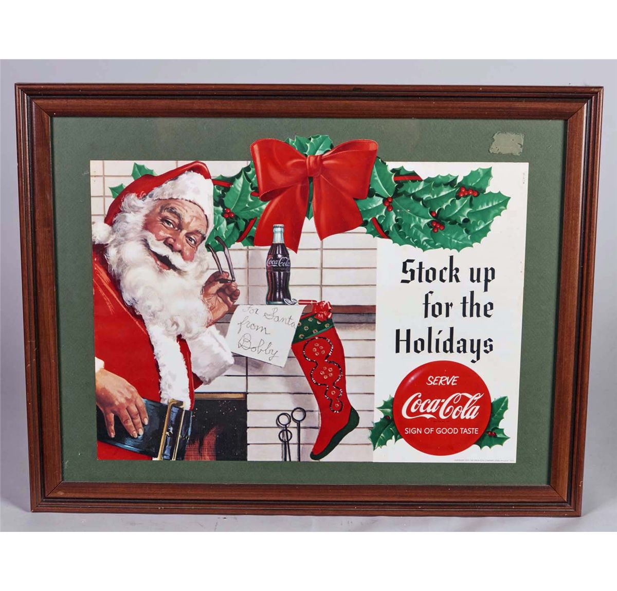 In frame circa 1957, "For Santa From Bobby" featuring Santa Claus with stocking Christmas theme. Condition (Excellent). Size 27" x 21"