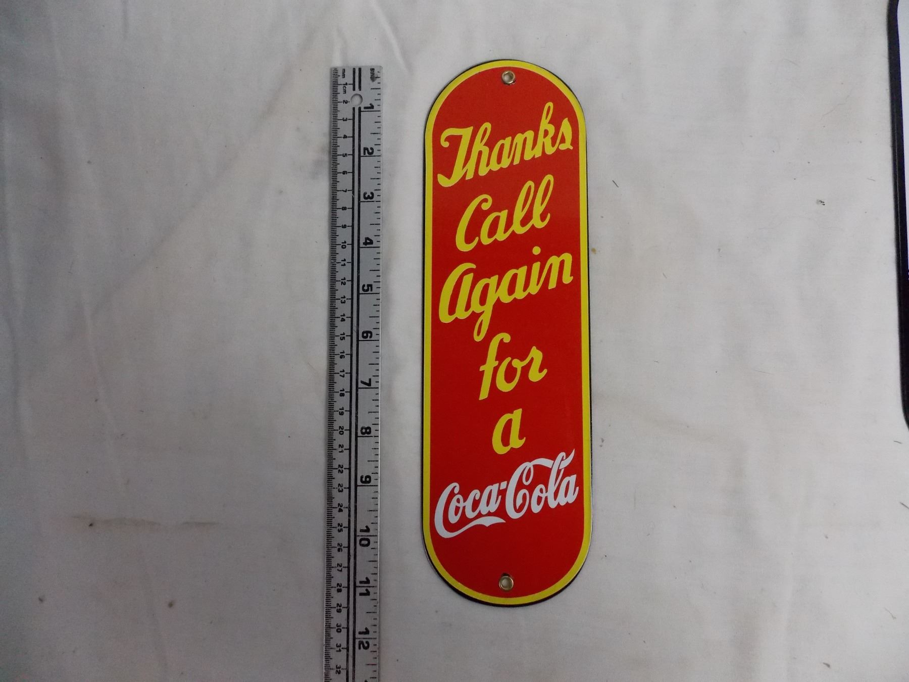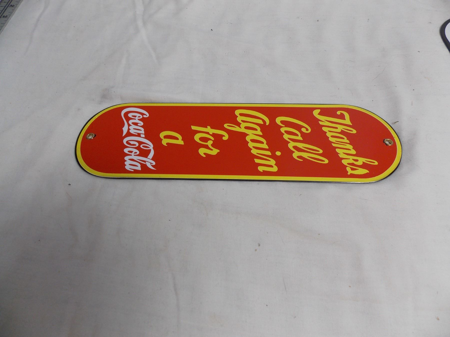 Coca Cola "Thanks Call Again" Door Push sign