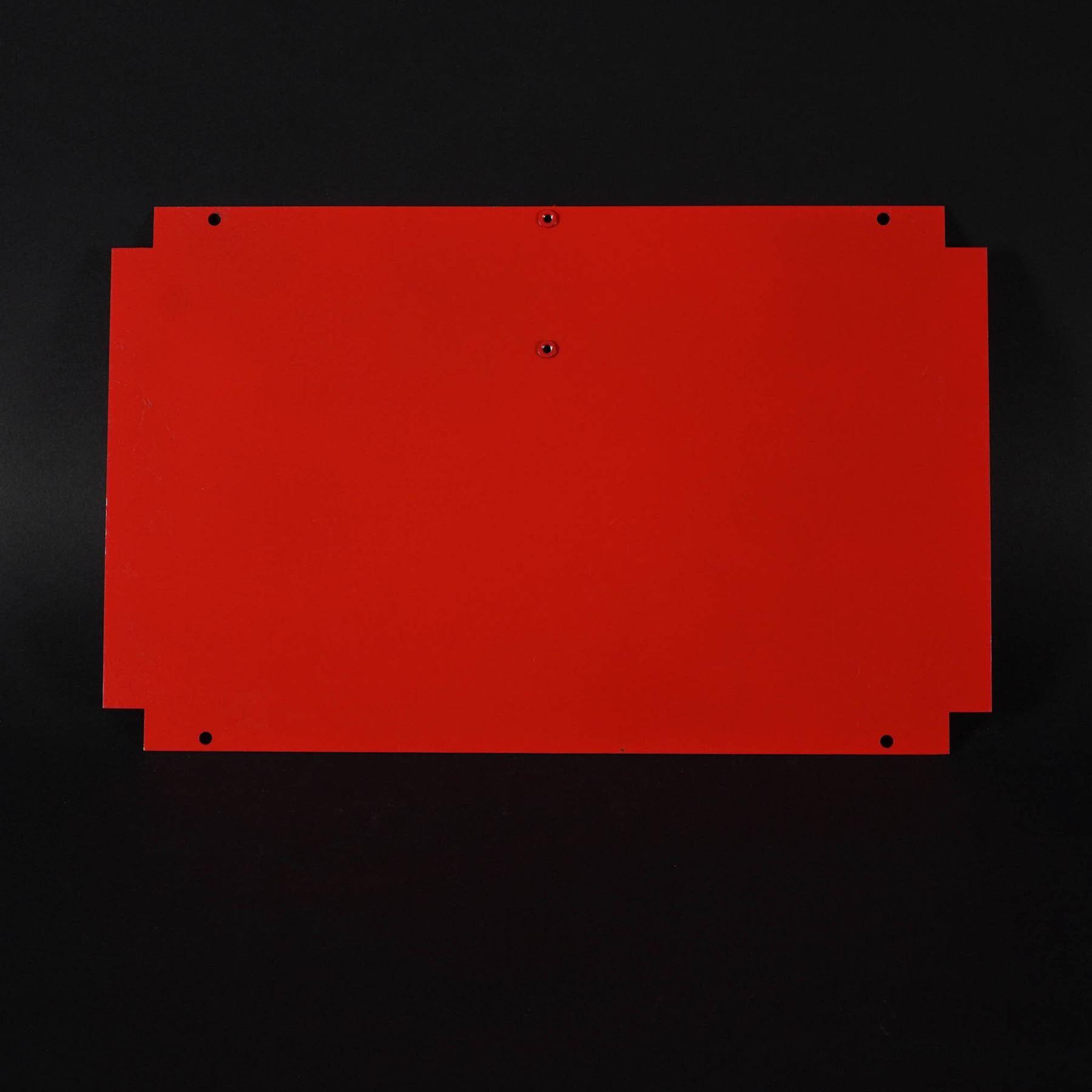 Rectangular tin Coca-Cola sign featuring the classic Drink Coca-Cola logo in white script on a bold red background, encircled by a white oval. Pre-drilled holes along the edges suggest it was designed for wall or display mounting. A striking piece of vintage Coca-Cola branding.