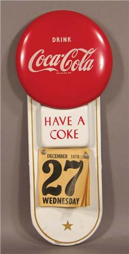 Coca Cola Tin Button Calendar. Very minor scratches at 6:00 otheriwise Excellent Condition. 8 x 19 1/2 inches.