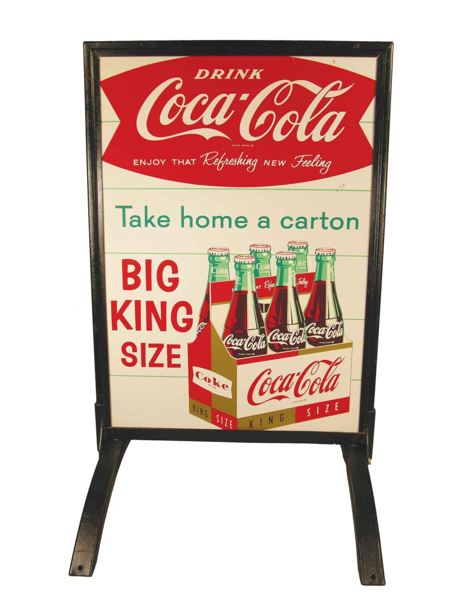 Coca Cola Tin/Iron Sidewalk Sign. Individual signs front and back. Fishtail logos. A few minor scratches otherwise both sides excellent condition. 20 X 32 inches.