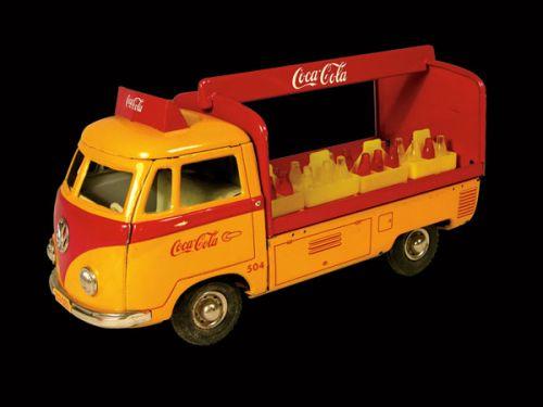 Coca Cola Tippco V.W. Toy Delivery Truck 1950s, tin with rubber wheels, comes with four cases of product. Near mint condition.