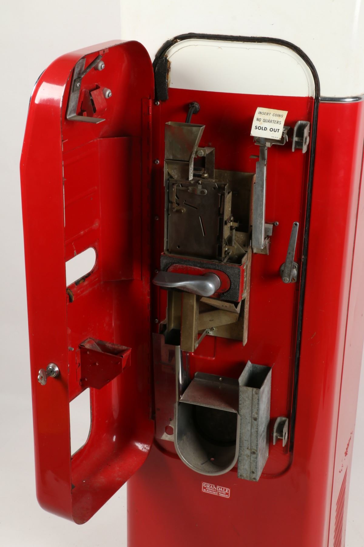 Vendo Model "44" vending machine. Holds 44 bottles. A complete, original example. Includes key. 57.5" x 19" x 16". Surface exhibits minor scuffs, shallow impressions and a few added holes where the accessory rack once hung. A very nice, untouched example of this highly sought machine. $2000-2500.