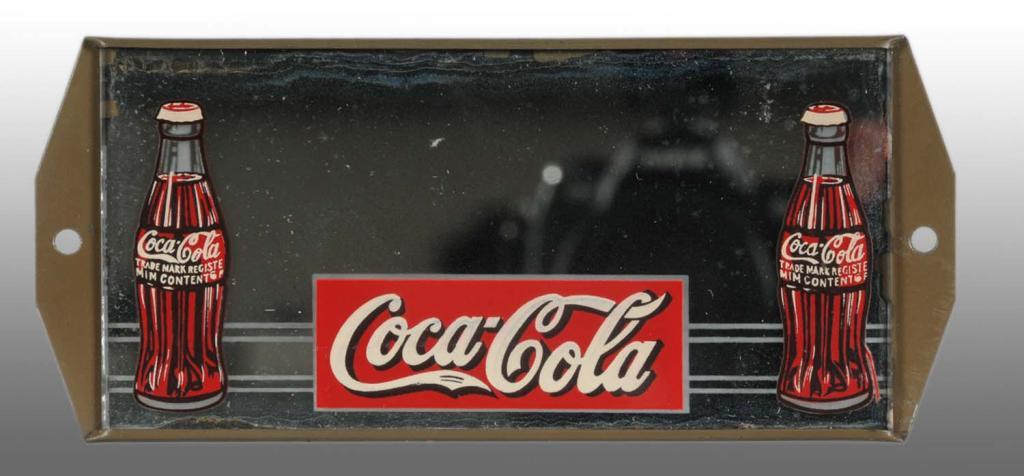 1930s. Rare two bottle mirror with original metal frame. Has some upper and lower mirror discoloration. Condition (8.5, Excellent). Size 3" x 7".