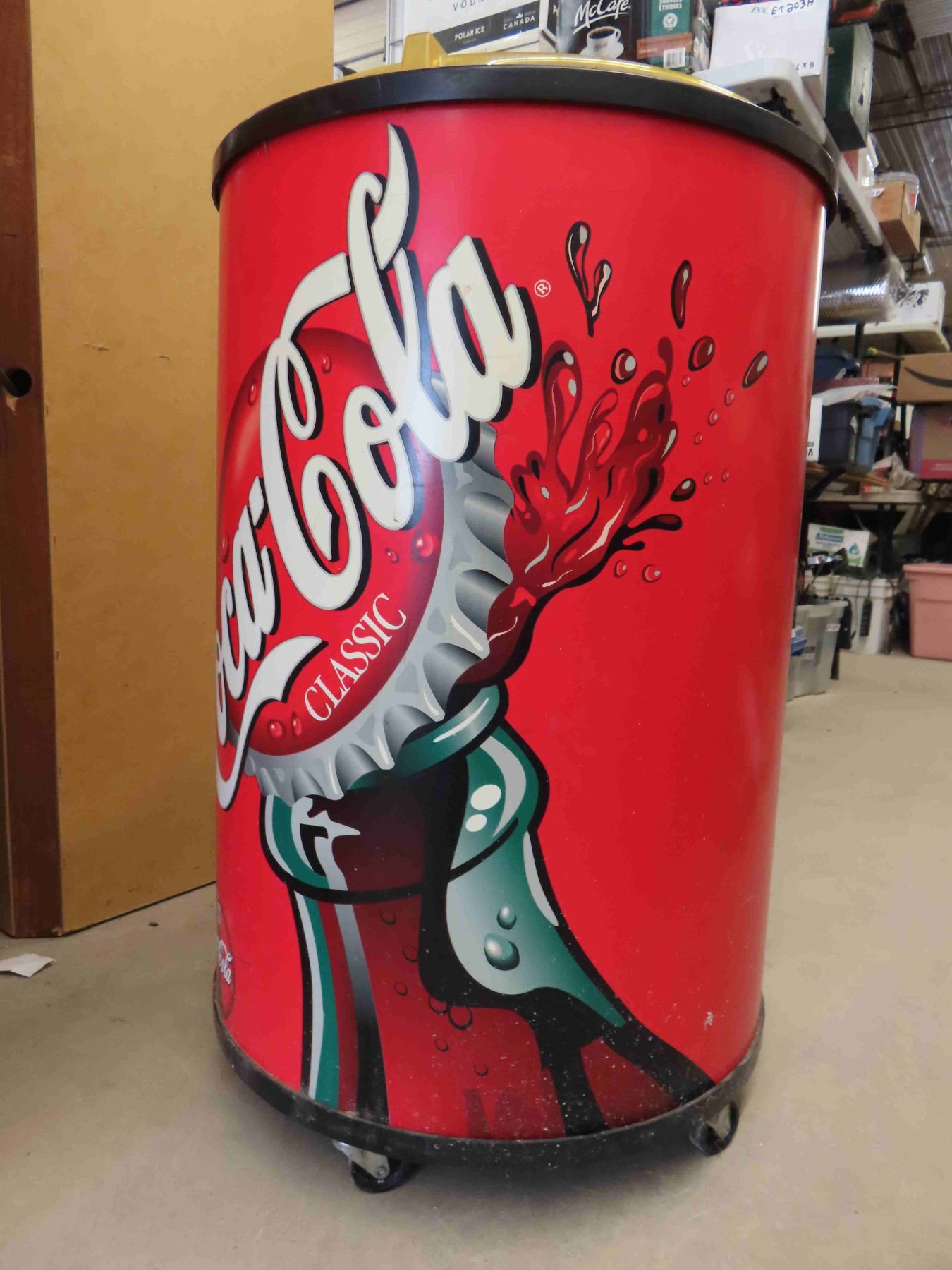 Coca Cola Water/Ice Cooler on Wheels 23'' Across x 37'' High