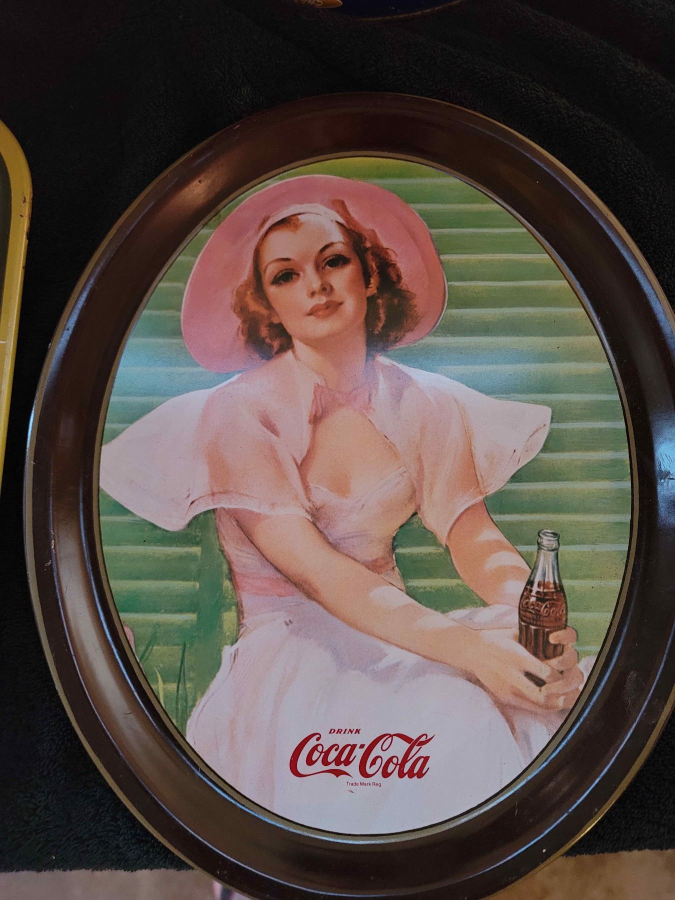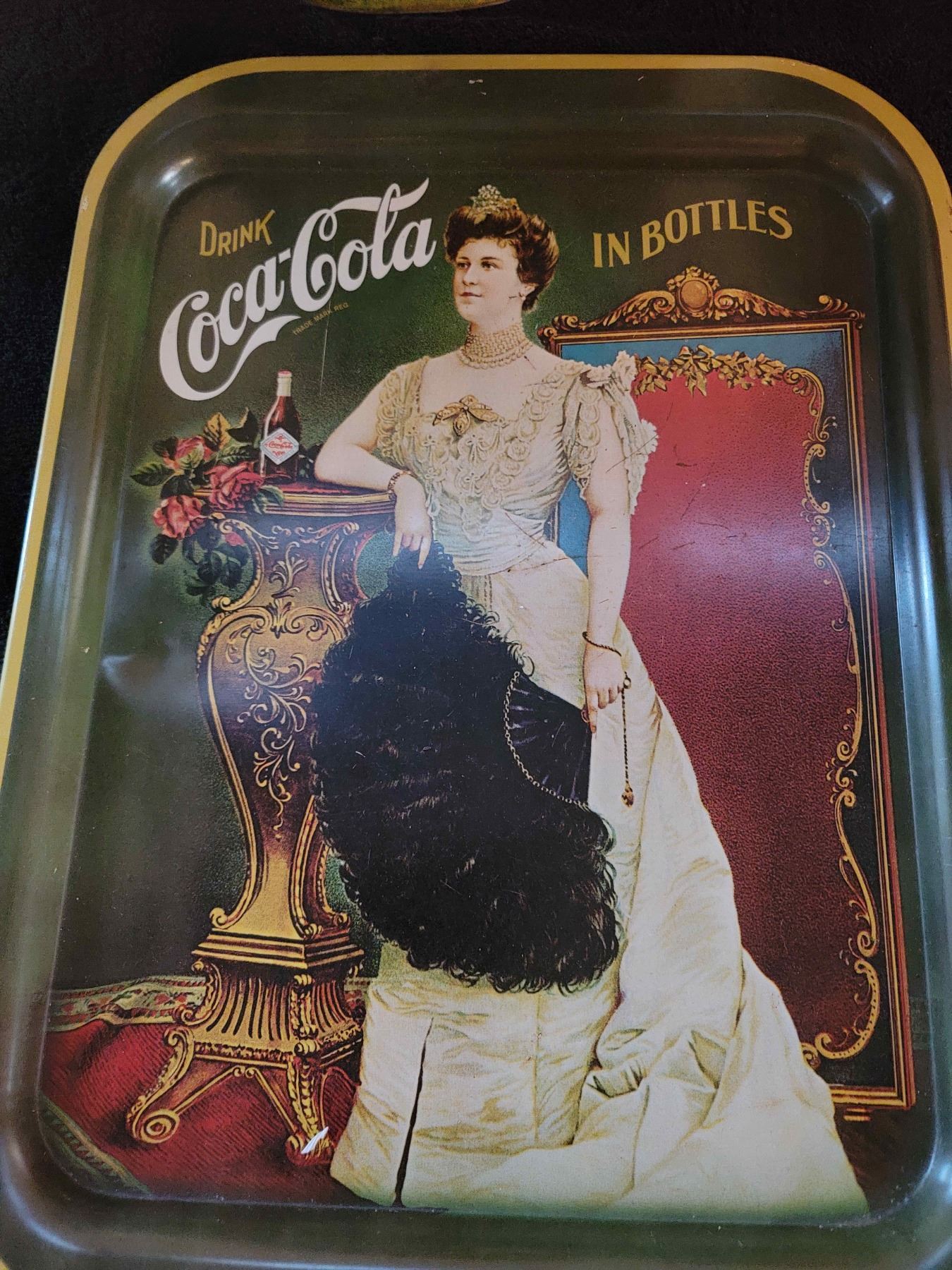 Coca Cola and Pepsie Popcorn tines and two vintage coca cola tray