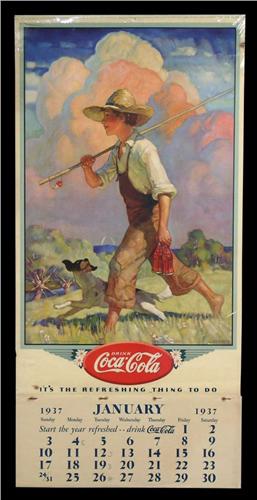 "Coca-Cola" calendar, 1937 "Boy with Dog" artist N.C. Wyeth 12 x 25"