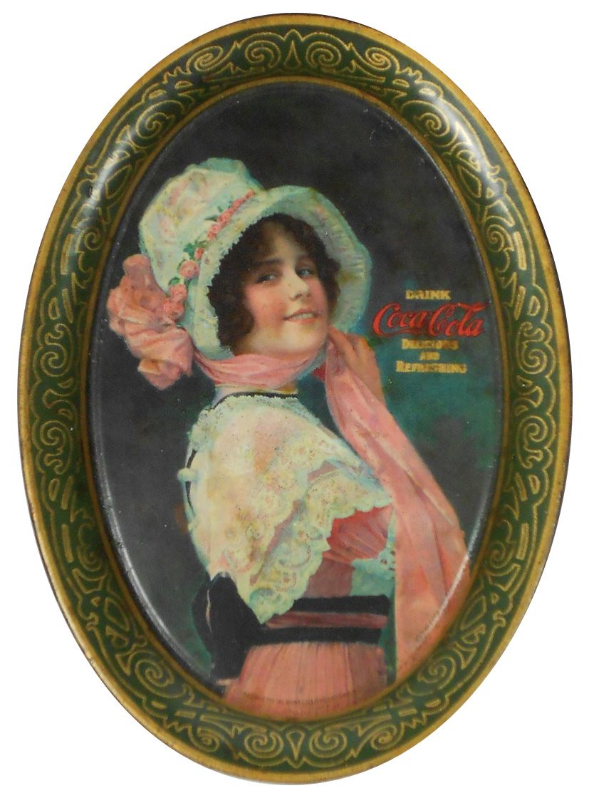 Coca-Cola change tray, Betty, c.1914, Passaic Metal Ware Co. litho on metal, Exc cond, 6"H x 4.5"W.
