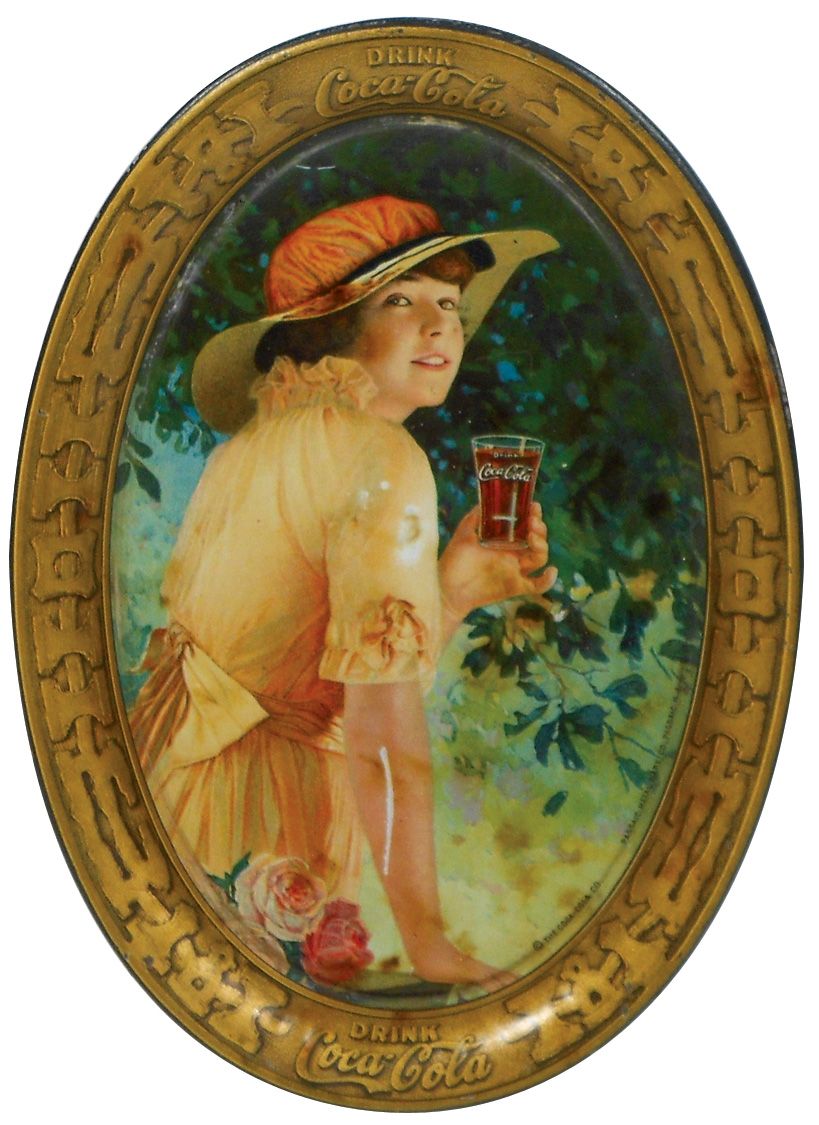 Coca-Cola change tray, c.1916, litho on metal by Passaic Metal Ware Co., scratch on arm, o/wise Exc cond, 6"H x 4.5"W.