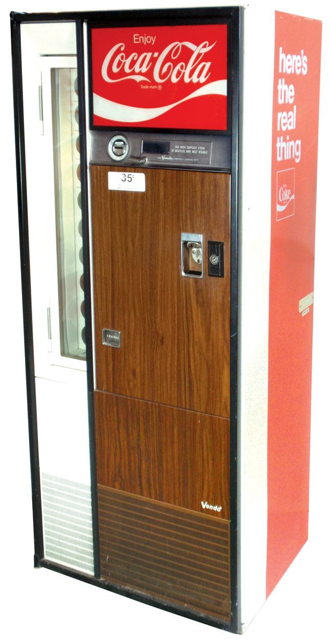 Coca-Cola machine, Vendo V-90, dispensed 35 Cent bottles, VG orig cond, approx 68"H.