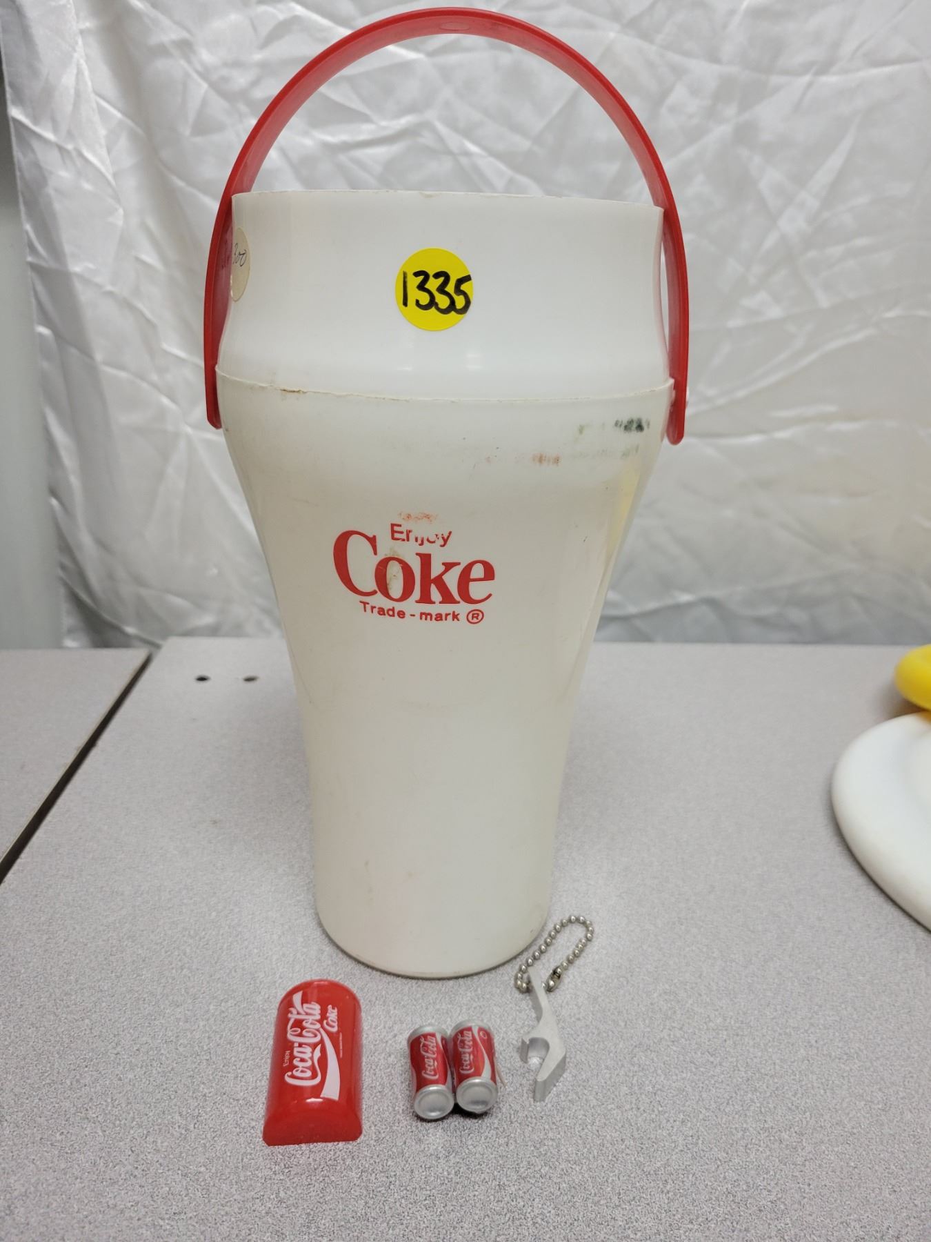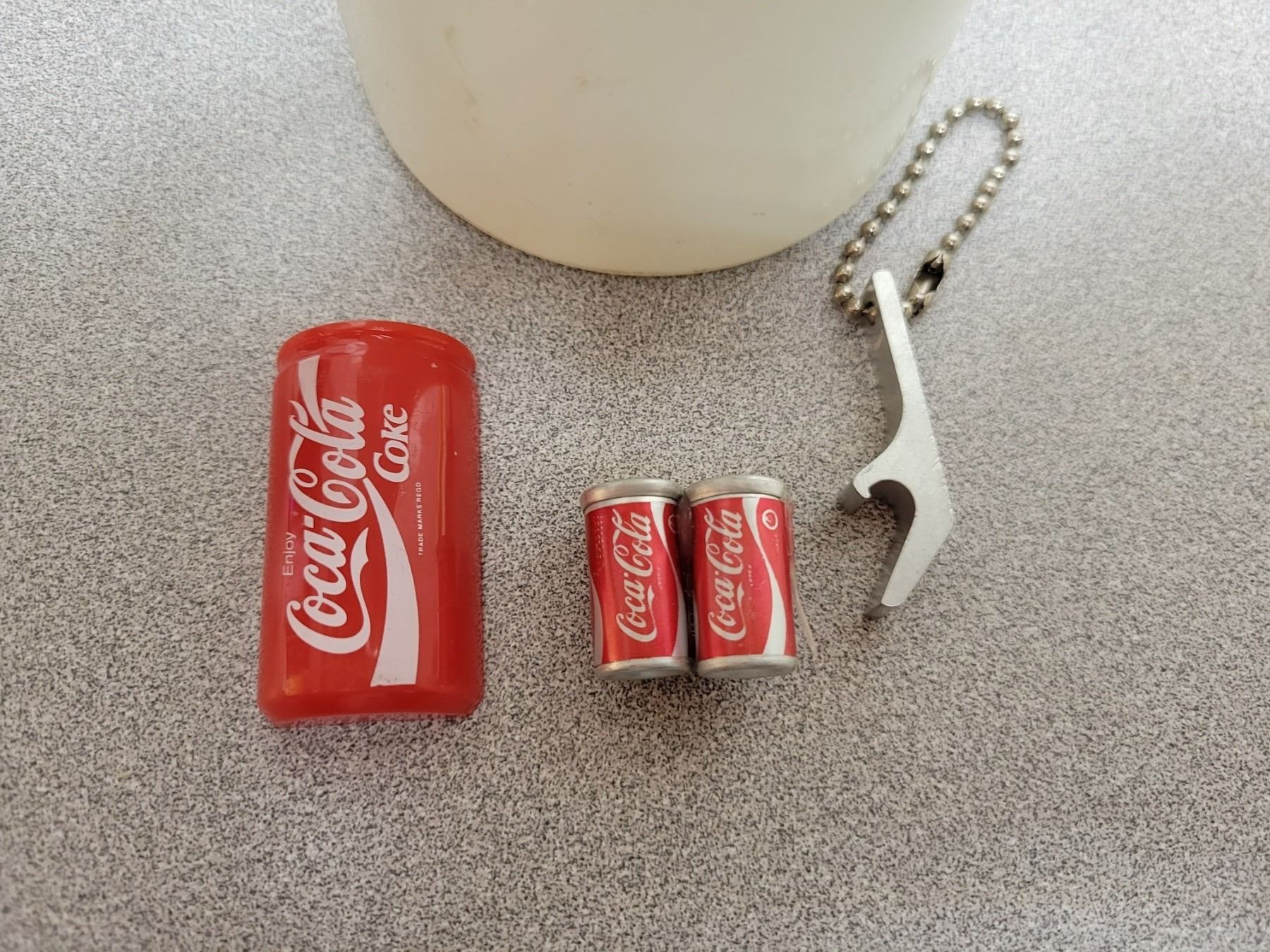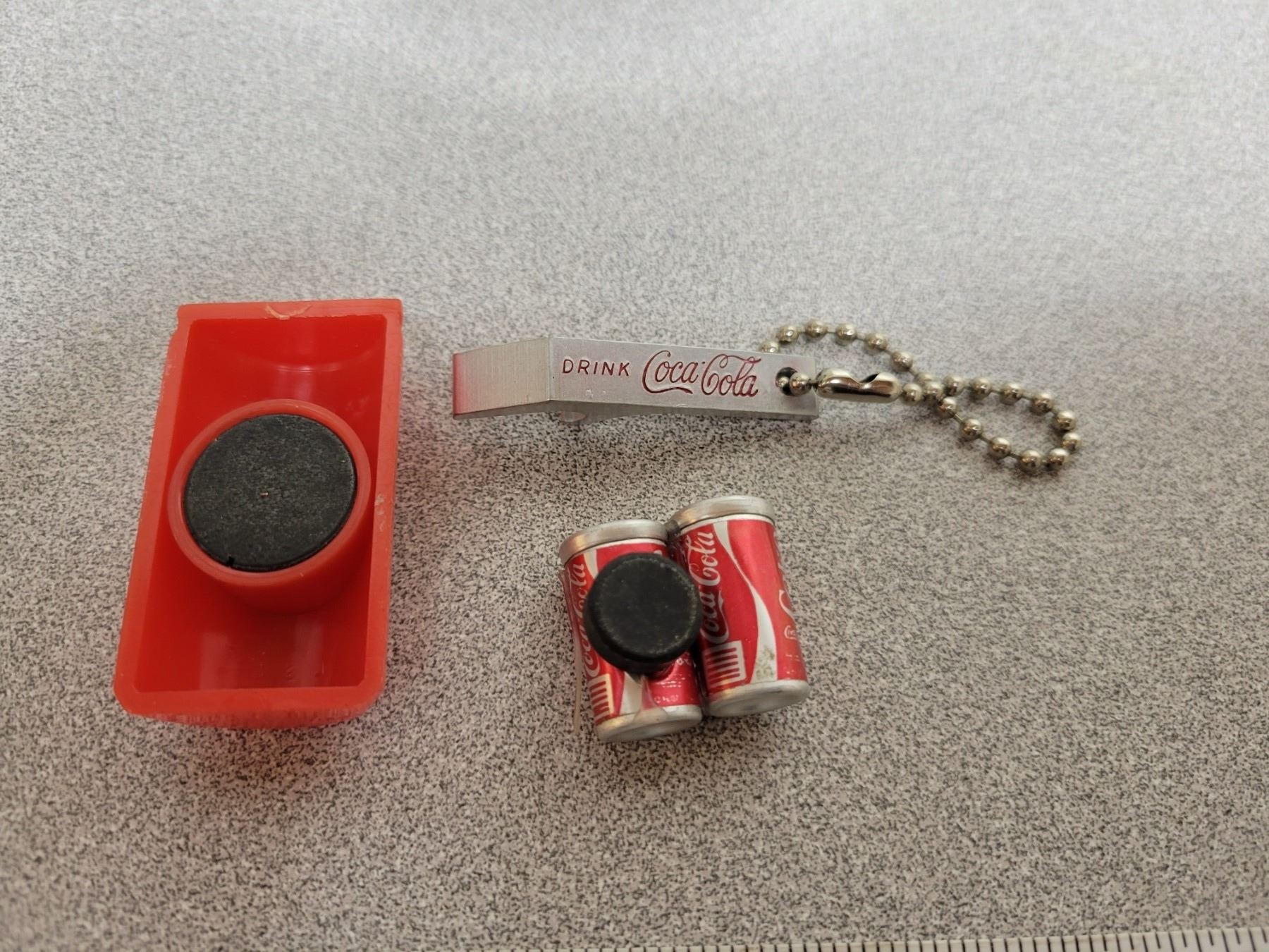 Coca-Cola plastic drink dispenser, fridge magnets & bottle opener