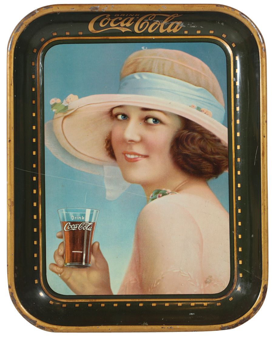 Coca-Cola serving tray, c.1922, litho on metal by H.D. Beach Co.-Coshocton, O., VG cond w/scratch across image & border wear, 13"H x 10.25"W.