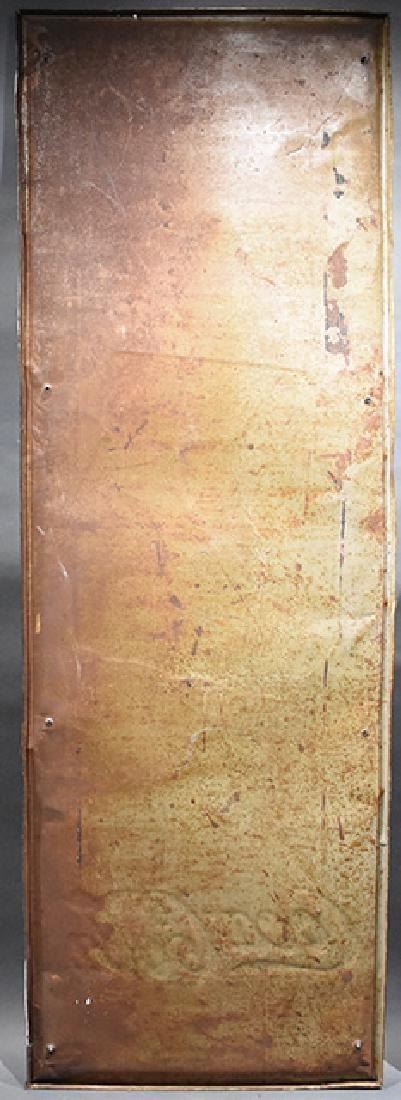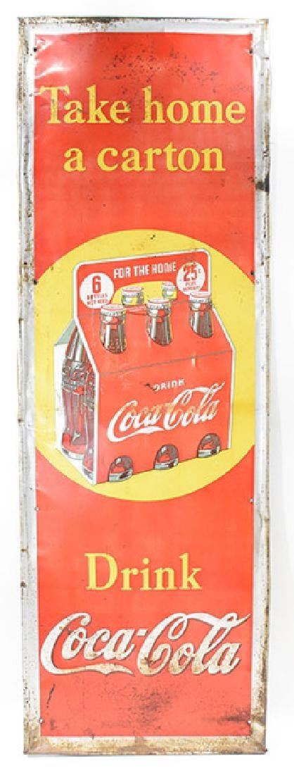 Tin coca-cola carton 25 cent sign Measures Apx. 54" tall and 18" wide.