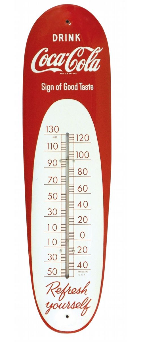 Coca-Cola thermometer, "Drink Coca-Cola, Sign of Good Taste", metal, c.1950's, Exc cond, 30"H x 8"W.