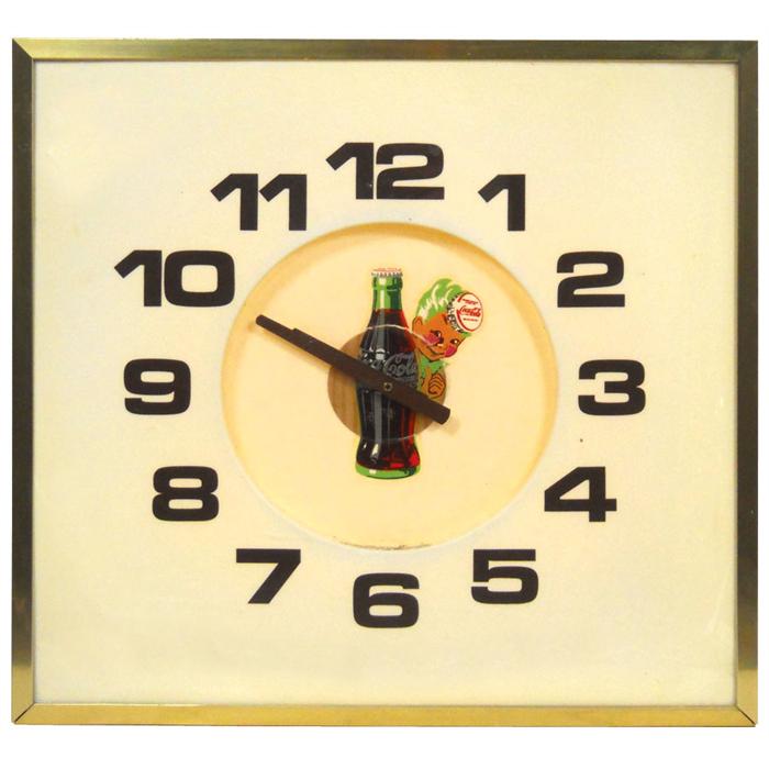 Coca-Cola thermometer, metal, c.1950's, Good+ cond, 30"L & Coca-Cola "Sprite" light-up clock, metal w/plastic front, lights up but clock does not work, 19"H x 20"W.