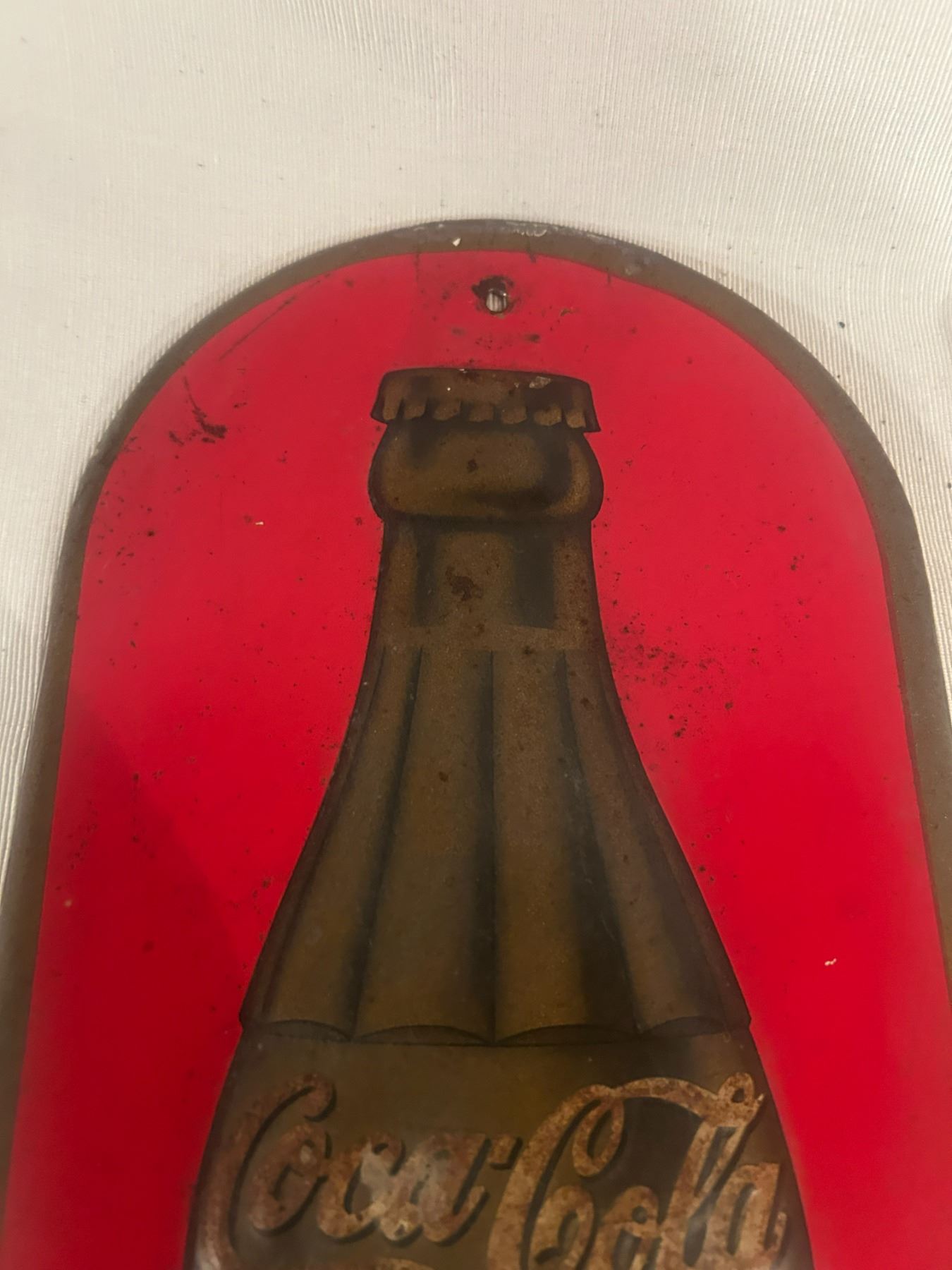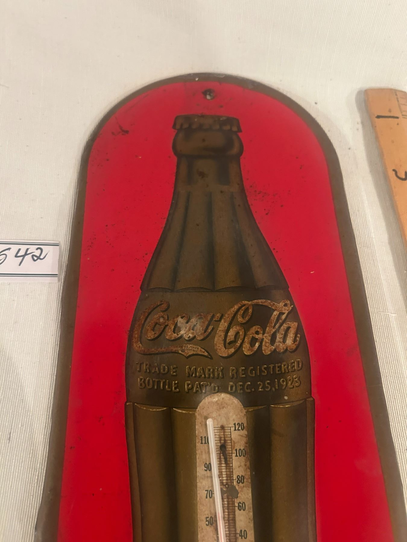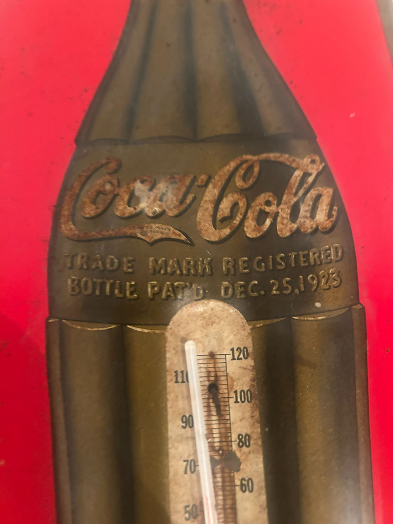Coca-Cola thermometer - raised bottle, 16"x7", patent 1923