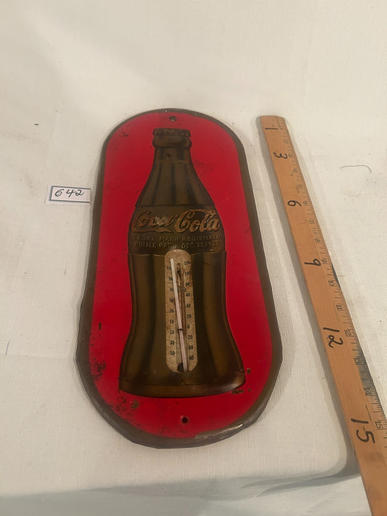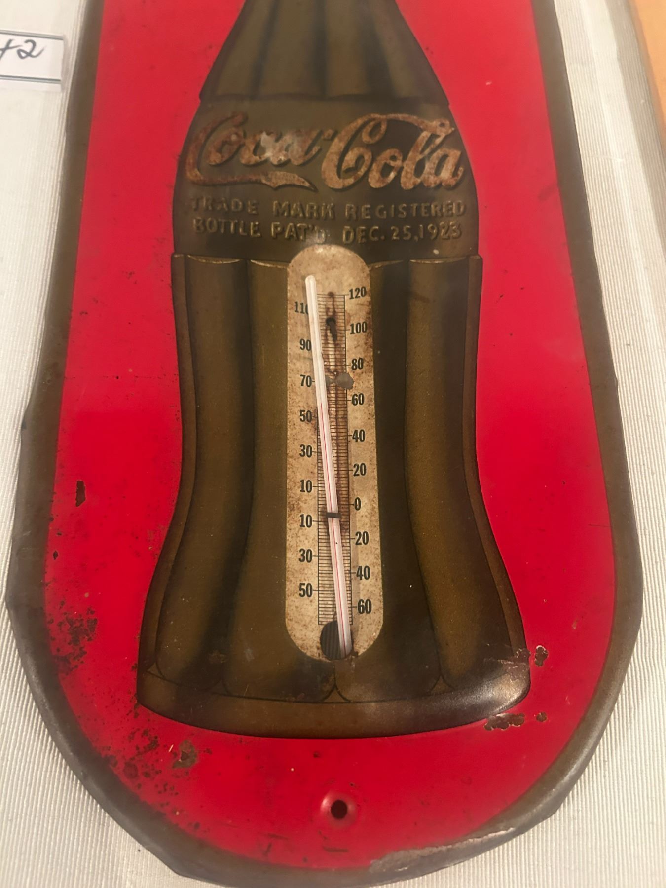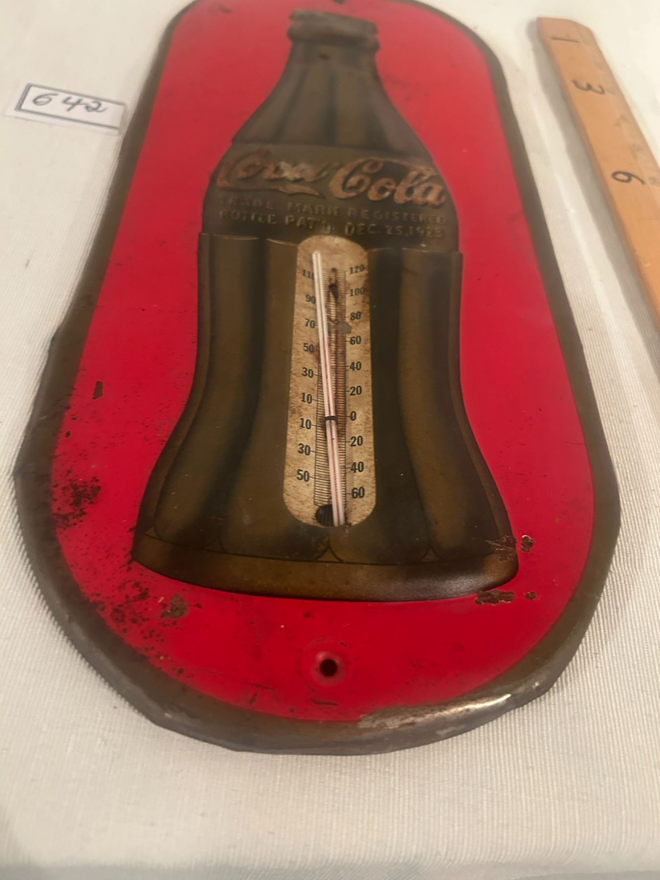 Coca-Cola thermometer - raised bottle, 16"x7", patent 1923
