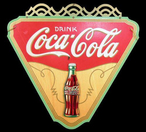 "Coca-Cola" triangle shaped wooden sign hanging display 20 x 19" Kay Displays, Inc great original condition