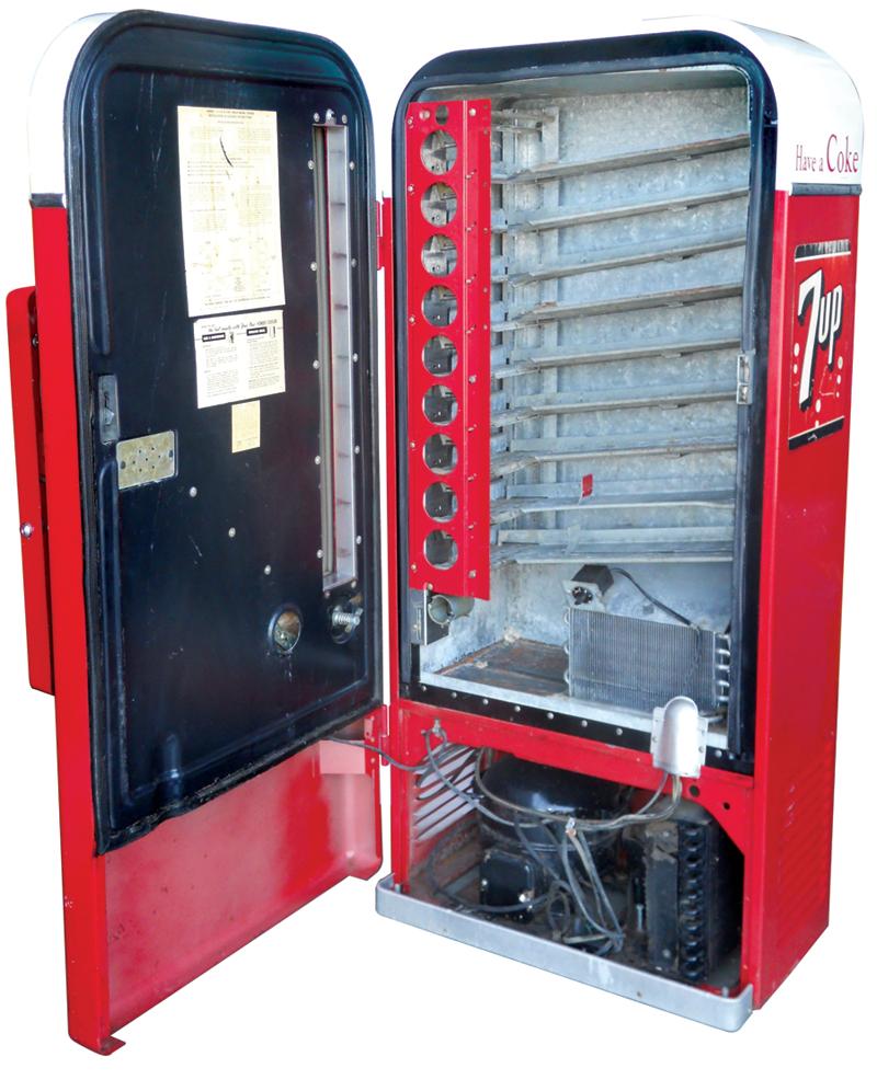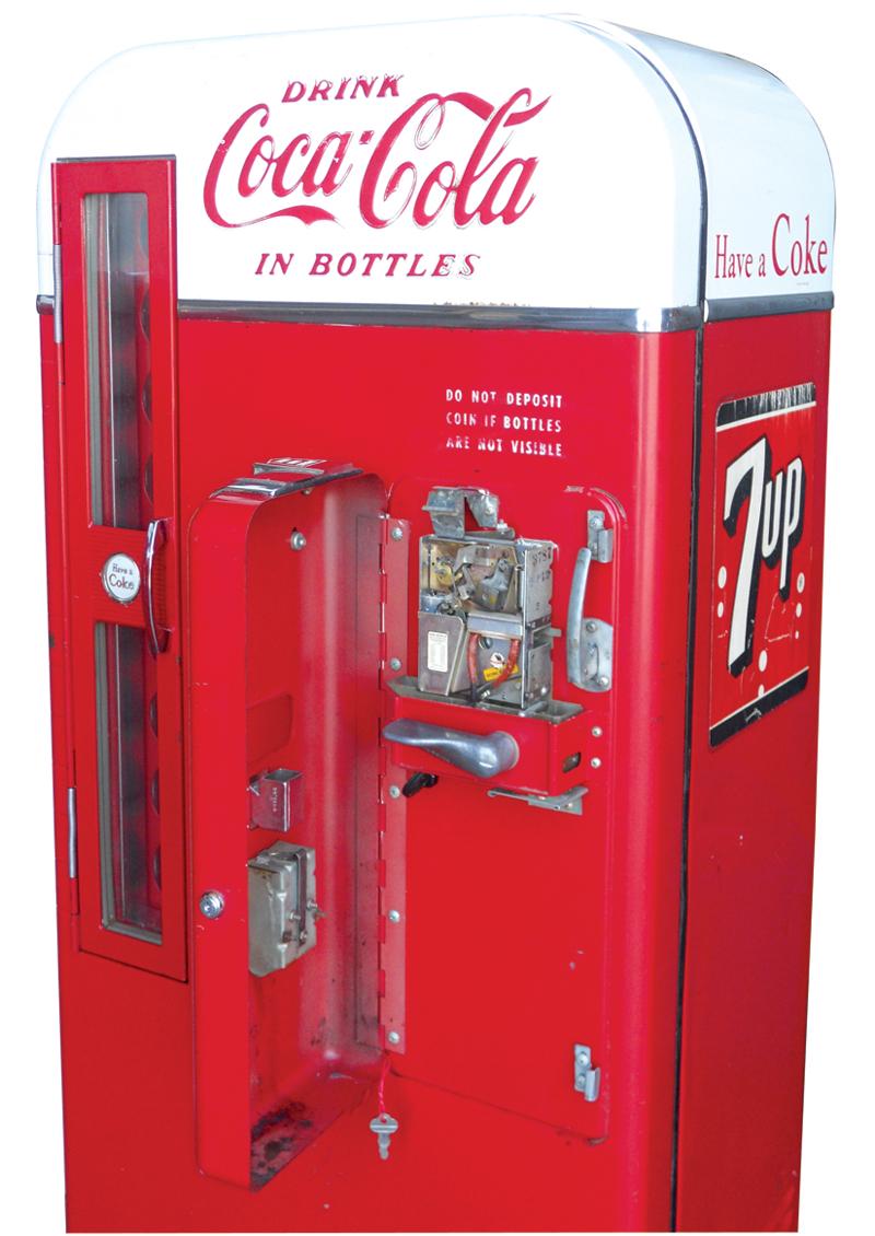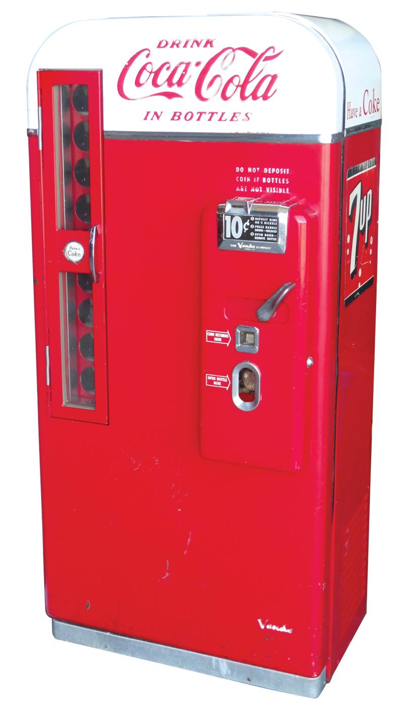 Coca-Cola vending machine, Vendo V-81B, 10 Cent, embossed door, VG orig cond, 60"H x 27"W x 21"D.