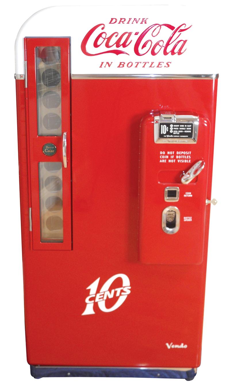 Coca-Cola vending machine, Vendo V-81B, 10 Cent, embossed door, white over red, accurately & immacul
